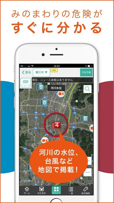 地図から河川水位や雨量が一目で分かる!河川の増水や氾濫時の避難に役立つ!