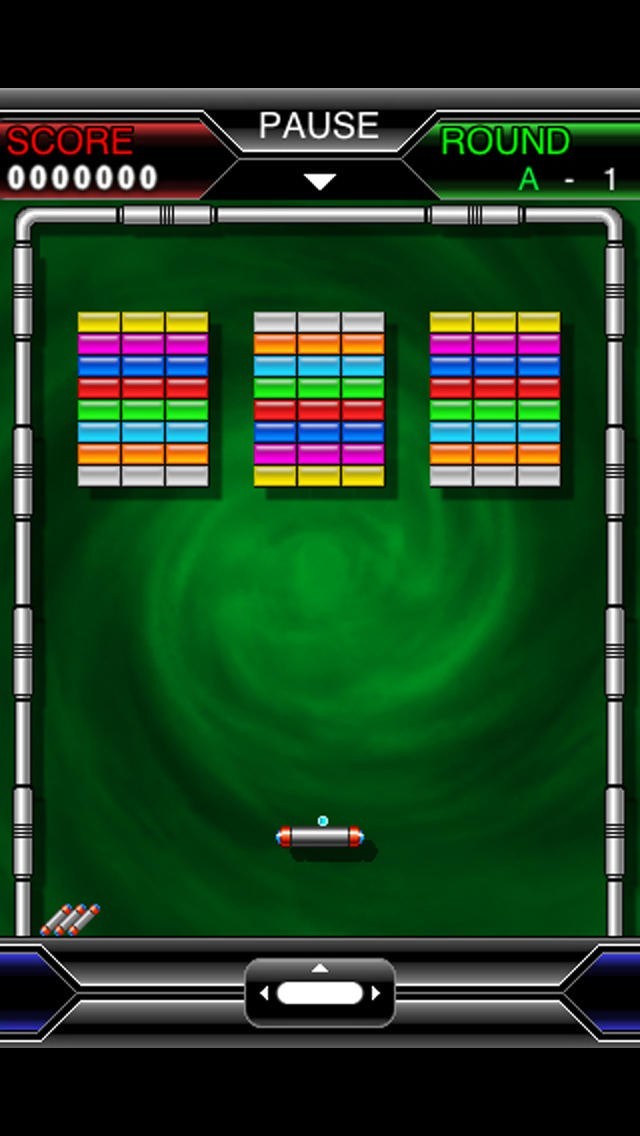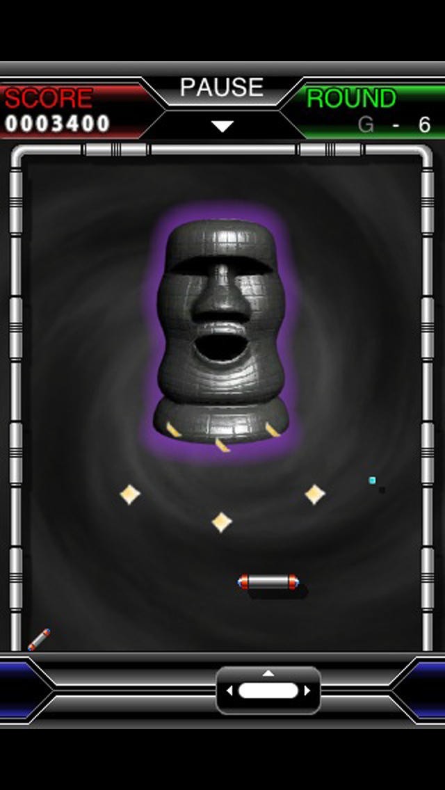 バウス(自機)をiPhoneならではのスライド操作で直感的に動かして、エナジーボールを跳ね返しブロックを壊せ!