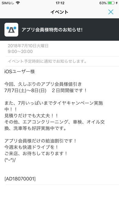 太陽石油のガソリンスタンドからのお知らせが届く!