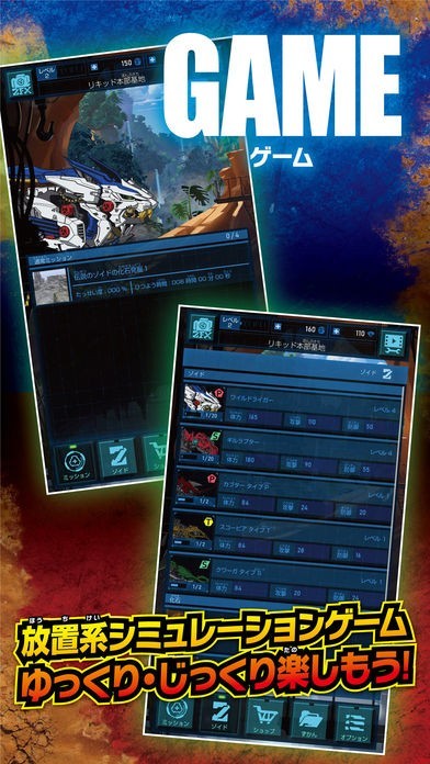 ゾイドワイルドは写真撮影を楽しむモード、組み立てレクチャー動画、ゲームと3つの楽しみかたがあり、ゲームは放置系シミュレーションゲームとなっており、じっくり楽しむことができます。