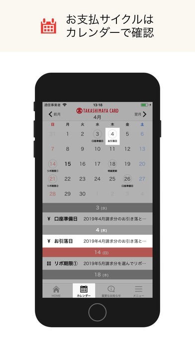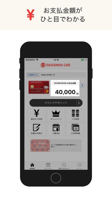 高島屋のお得な情報やクレジットカードを便利に使う機能が満載のタカシマヤカードアプリ