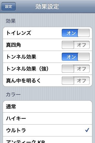 トイレンズ、トンネル効果などの機能が使える