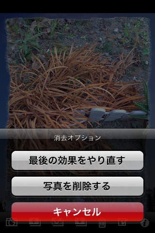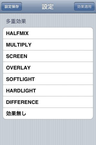 多重露光を活用することによって、魅力的な作品を作り出すことが出来るアプリです。多重効果の機能には、HALFMIX、MULTPLY、SOFTLIGHT、HARDLIGHT、DIFFERENCEなどといった効果が用意されており、設定から選択することで効果を利用できます。また、消去ボタンでは作品を消去することが出来るだけはなく最後の効果をやり直すといった機能が用意されているので、気に入らない効果があった場合には元に戻すことが出来ます。