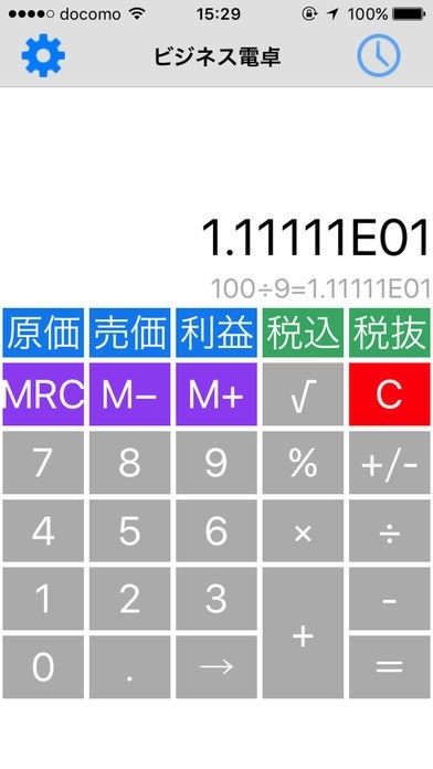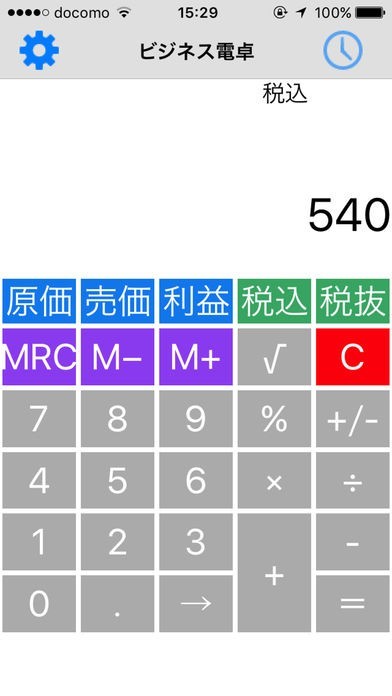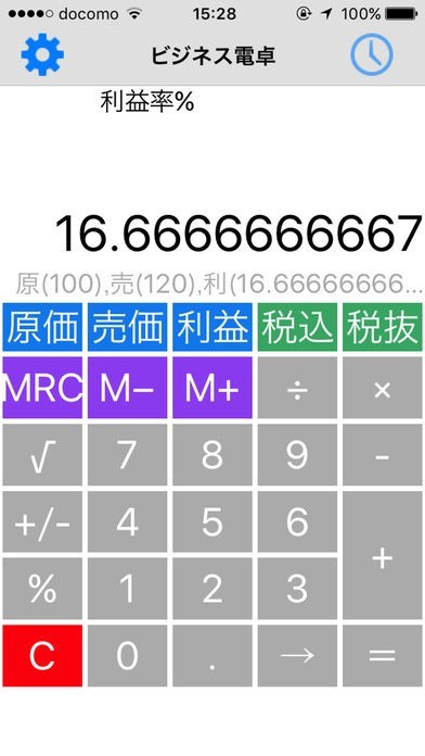 その他にも、メモリ演算、税込・税抜表示、平方根、割合(%)計算、などに対応した電卓です。
