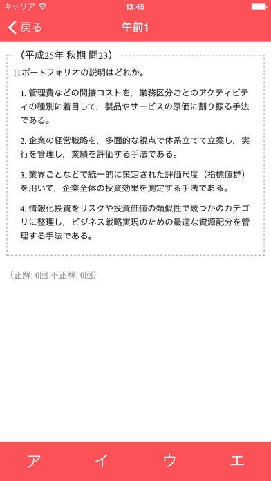 App Storeより引用データベーススペシャリストの過去問です。平成21年度から27年度までの午前Ⅰと午前Ⅱを収録しています。午前Ⅰの問題は他分野の秋の問題も収録しました。