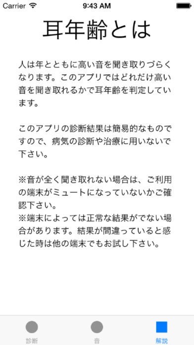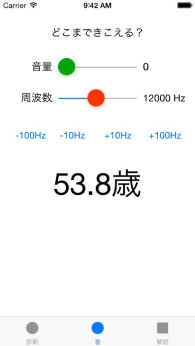 どれだけ高い音を聞き取れるか実際に測って耳年齢を診断できるアプリでスマホの音をしっかり聞こえるような環境状態にしてから開始する事でより正確な診断ができて良いです。