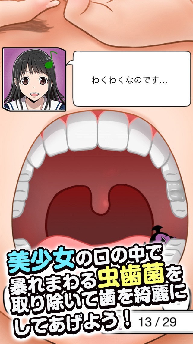 パーフェクトを目指せ!女の子の口の中に住みついた虫歯菌を退治するスワイプゲーム