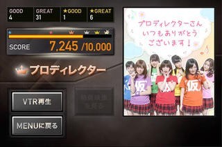 このアプリを使えば、アイドルが歌っている場面を自由にカメラを動かしたりして、素敵に映し出すといった楽しみ方が出来ます。 よって、アイドルが好きな方にとっては夢のような体験をすることが出来ます。 カメラは5台用意されているので、素敵な表情をしている方を逃すことなく映すことによって、得点が追加されていきます。 最終的にスコアが10000点満点で何点だったかを知れて、自分が作ったVTRを再生することができるので、見直して改善点をみつけだしたりできます。 さいごに「プロディレクターさんいつもありがとうございます」えおいうメッセージが表示されるので、嬉しい気分になります。
