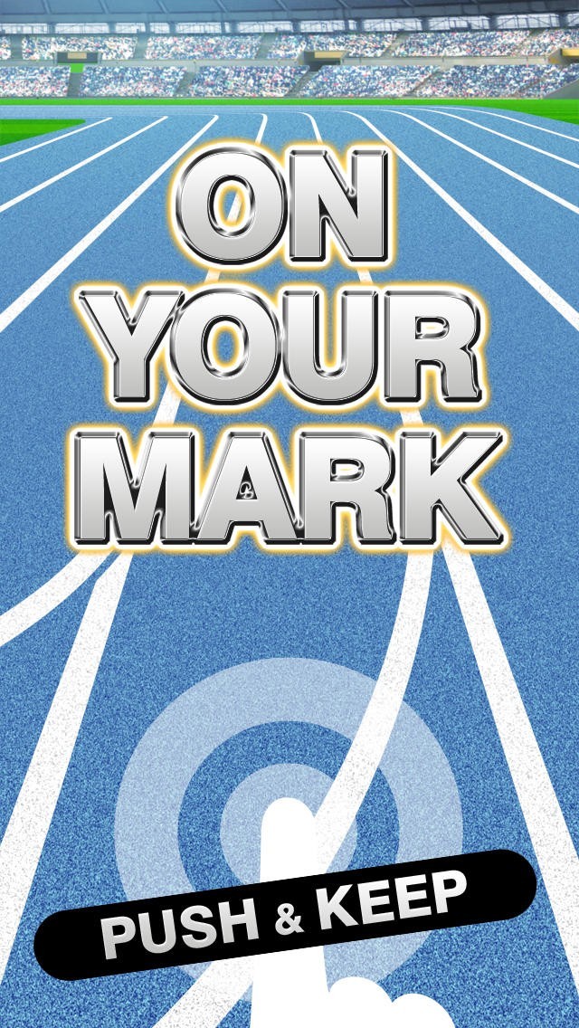 「ON YOUR MARK」出現したガイドマークを指で押し続け、スタート体勢となります。