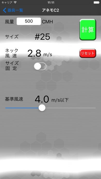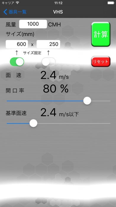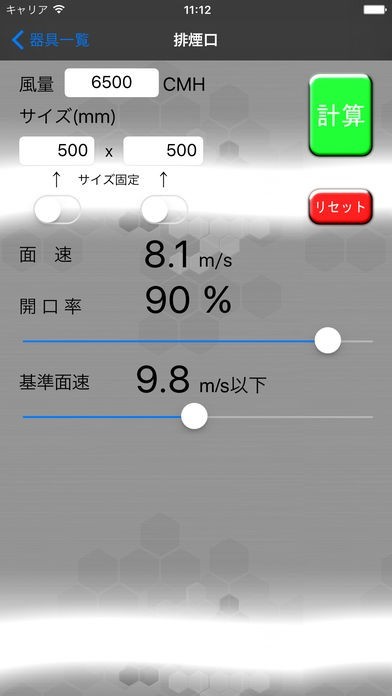 開口率や風量の数値を変えることで、違った結果を表示できます。シークバーで細かい調整もできますし、色々なパターンを試すことが可能なので、サイズの選定に役立てましょう。