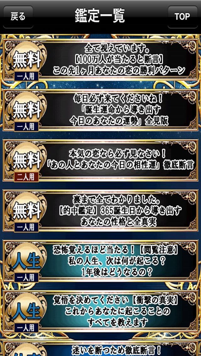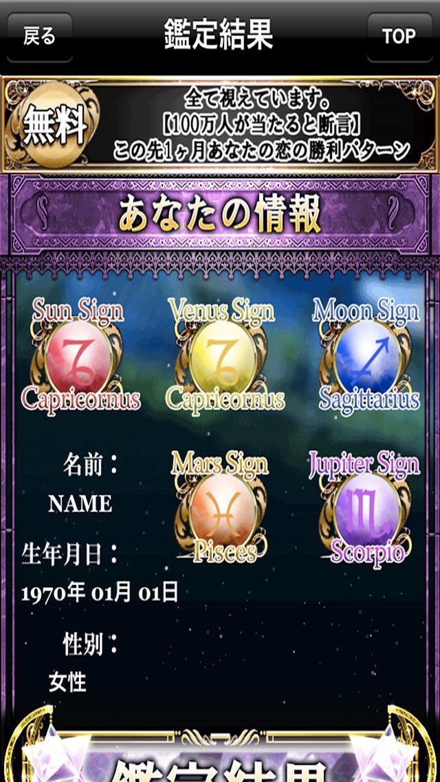 数多く存在する占い中で、高い人気を誇っている「誕生日占い」。もしあなたが、普通の誕生日占いにはない真実を欲しがっているなら、このアプリを使ってみましょう。あなたの誕生日に、惑星のアルゴリズムをプラスして、裏側に隠された真実を導きだしてくれます。その内容は、よく当たると評判なのでちょっと怖いかもしれません。しかし、本当の自分と向き合って、新たな一歩を踏み出したい時には欠かせないアプリです。その内容は、恋愛をはじめ、仕事、人生、人付き合い、お金etc、多岐にわたっています。だから、学生も社会人も、主婦やシニア世代も、きっと満足のいく結果が得られるでしょう。