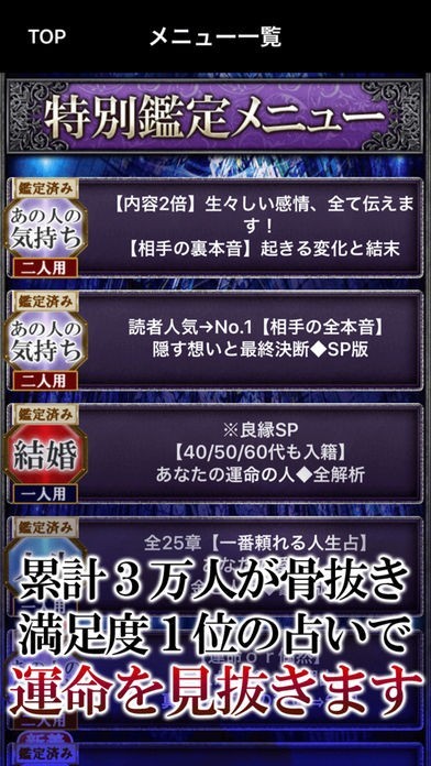 占い購入機能搭載でより悩みに合わせた占いを体験できる