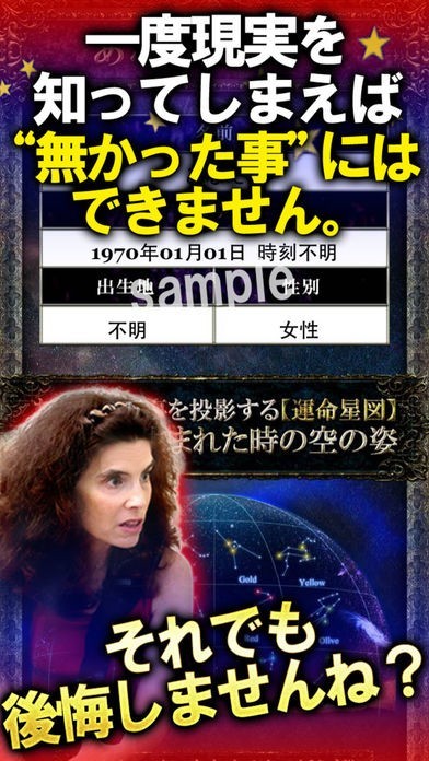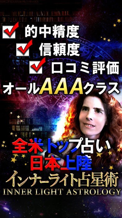 App Storeより引用的中精度・信頼度・口コミ評価⇒オールAAA!全米震撼×世界メディア殺到の当たりすぎる占いが遂に◆日本緊急上陸◆本当に当たり、救われ、涙が流れる……全米が誇る人気占星術ストラテジストの本物鑑定をあなたのお手元でお楽しみ下さい。