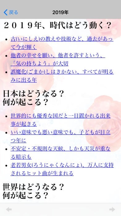 各種メディアで活躍されている下ヨシ子先生による運勢判断が行えます。誕生日と性別を入力して、運命のシナリオである「流生命」を知ることで、2019年の運勢を占います。運勢を知ることで、1年間より幸せに生きるための一つの方針となってくれるアプリです。