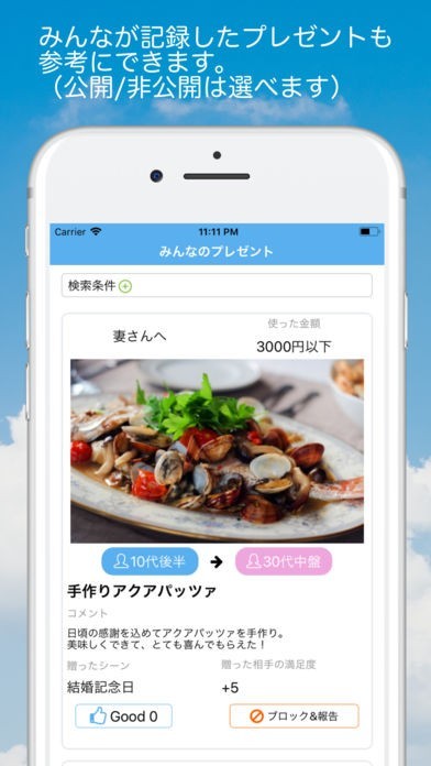 記念日ごとに贈った・貰ったプレゼントを写真と共に記録できます。