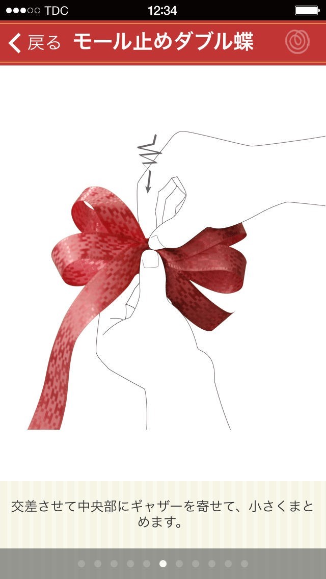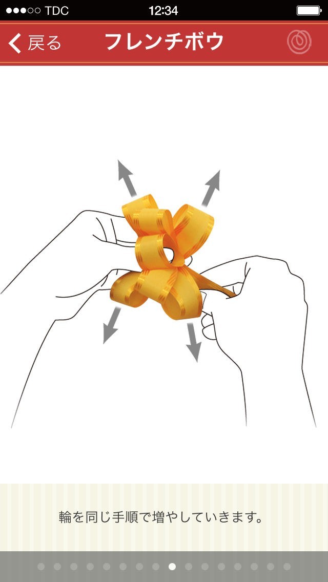 「Wrapping abc」は東京リボン株式会社が、様々なリボンの結び方や、ギフト用のラッピング方法を紹介するアプリです。
