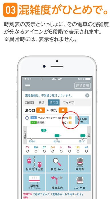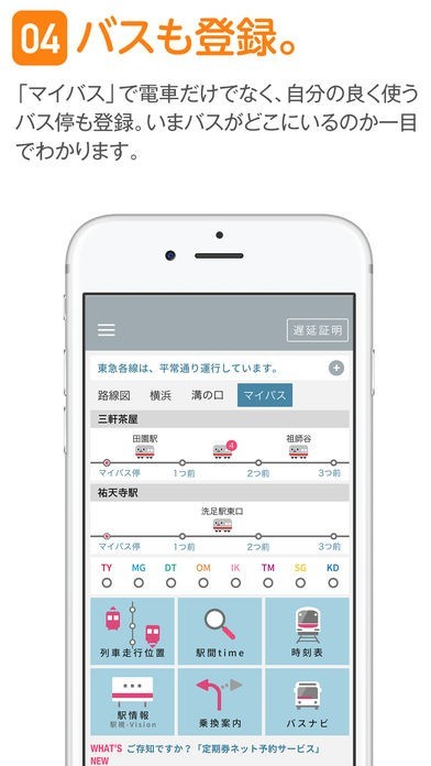 「マイ乗降駅」を登録しておけば、アプリ起動後にワンタップで混雑状況や天気などの細かな状況まで知ることが出来るので、座れるかどうかをあらかじめ把握したり傘が必要か知れたりするのでお出かけ前に必見です。 加えて、プッシュ通知を活用してゲリラ豪雨に関する情報も知ることが出来るので、すぐに対策をとることができます。 また、「マイバス」を登録しておくことによって、近くのバス停の情報なども一緒に見れて、事故などで電車が使えないときなどにもすぐに対応することが出来ます。