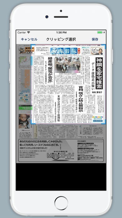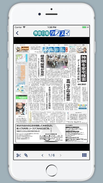 新聞記事は拡大して読んだり、複数ページを1ページに纏めて便利に移動することが可能です。