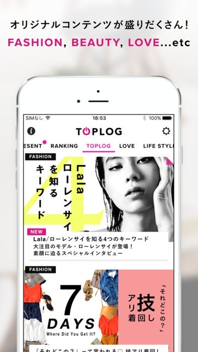 ファッションのトップ記事が充実!『TOPLOG』は、カリスマモデルやトップスタイリストと提携し、ビューティーやファッション、エンタメといった各種ジャンルの最新情報を配信しています。コーデ投稿機能として「STYLOG」を搭載。最新の流行を取り入れたコーデ投稿は、毎日の着回しやアイテムの使い方に悩んだ際の参考としても活躍してくれるでしょう。ランキング機能からは今話題の記事を手軽にチェック。有名モデルが多数登場する人気記事なども素早く知ることができる他、ファッション業界の流行に手軽に触れられるのもオシャレ女子にもは嬉しいポイントとなっています。