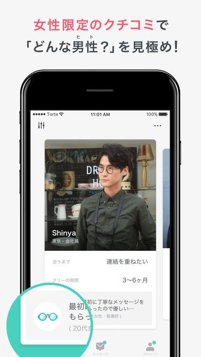 「どんな男性?」がクチコミでのぞける恋活・婚活アプリ、トルテ!