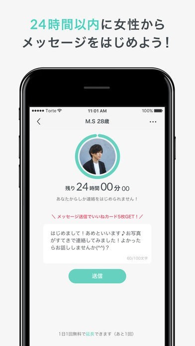 ●24時間以内に、女性のペースで連絡をはじめることができます