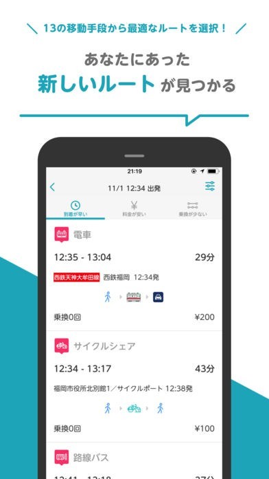 目的地までの道のりをどのルートで行けば一番早いのかを調べます。もし途中でトラブルがあって乗っていたものが動かなくなった場合でもすぐに違う乗り物へと乗り継ぎが可能です。