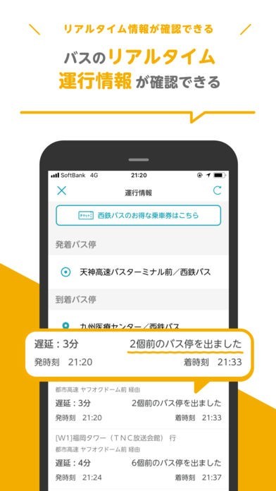 福岡で観光をする際にバスなどのチケットを購入したり、マップをみてナビゲーションをすることが出来ます。バスを待っている時には、あとどれくらいで到着するのかを正確に知らせてくれます。