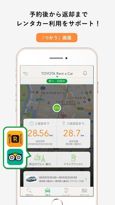 トヨタレンタカーの予約から返却まで、アプリで簡単操作可能