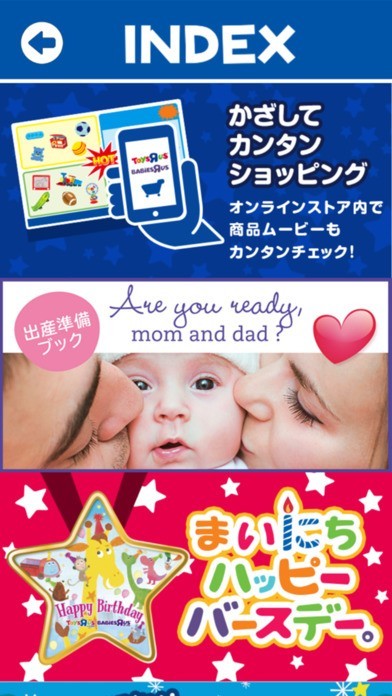 「かざすカメラ」はトイザらスが公式配信するアプリとして、配布されるチラシやカタログ、ダイレクトメールなどに対応したARカメラ機能を搭載しています。チラシなどに印刷されたマーカーにカメラをかざすだけと、簡単操作も嬉しいポイント。カメラ越しに賑やかなアニメーションが流れたり、可愛いキャラクターが3Dで動いたりと、親子で一緒に楽しめるコンテンツが再生されます。アイテムボックス機能からは、ARカメラの再生によって獲得したアイテムなどが表示されます。ここだけのクーポンなども収納される他、テーマソングの再生も可能。お店のファンには見逃せない機能が揃っています。