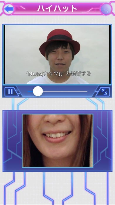 自分の口の動きかたを撮影することでレッスン映像と並べて比較することができるようになっているので、音を出すための正しい口の動かし方を身につけることが可能となっています。