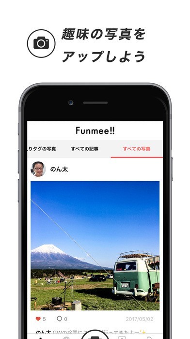また自分の趣味を楽しんでいる写真や動画をシェアすることで、Funmee!!アプリ上でつながることも。