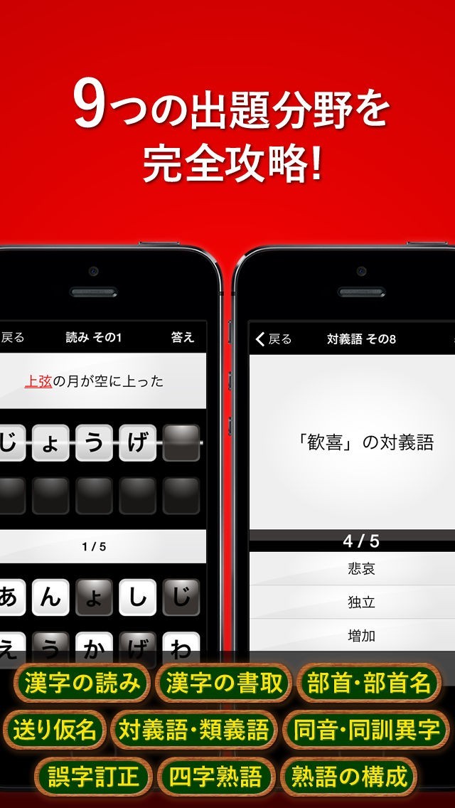 「誤字訂正」や「四字熟語」など、通常のアプリでは、対策がやや難しいジャンルの学習もバッチリ行う事が出来るので、苦手なジャンルを少しでも減らしたい人にはおすすめです。