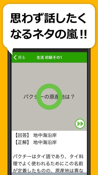 タップ操作で簡単!3択の選択式クイズだから、誰でも気軽に楽しめる!