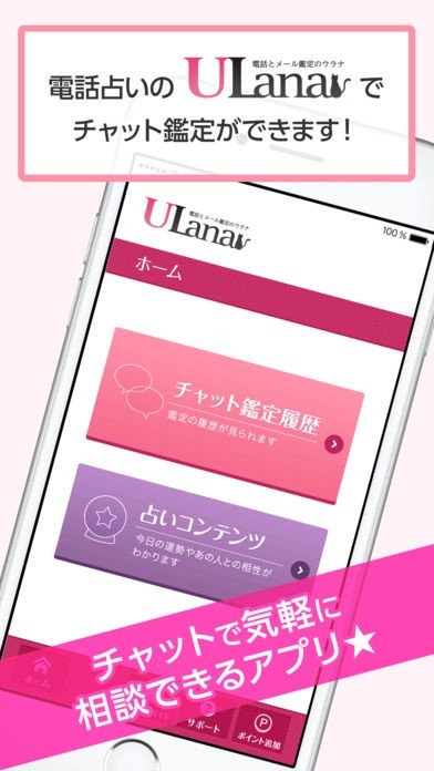 『電話とメール鑑定のウラナ』はチャットや電話で直接占い師に鑑定してもらえるアプリで実力のある占い師が120名以上在籍しているので自分に合った占い師を探す事や時間が無い時などでも待つことなく連絡ができるので悩んでいるタイミングを逃すことなく相談できます。相談できる内容は「あなたの本質」や「今日の運勢」などの基本的な占いから「気になる相手との相性」や「星座のアドバイス」などさまざまなカテゴリが用意されているので安心して相談することができるようになっています。急な話で決断を迫られた時や知り合いには話せないような悩みの相談の時でもチャットなので席を立つふりをして周りの人の目や耳を気にすることなく相談ができます。