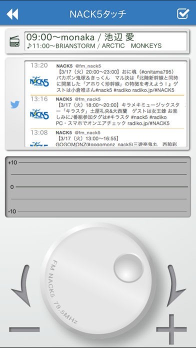 また、ラジオアイコンをクリックすると番組情報画面が開いて投稿ができるほか、Twitterのタイムライン(#NACK5)も確認できます。
