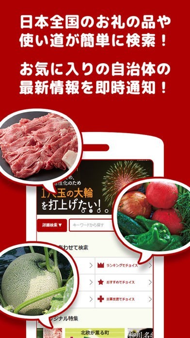 プッシュ通知に対応しているため、確定申告の時期や自治体からのニュースも素早く確認出来るでしょう。検索機能が用意されているので、自分好みの返礼品を探したい時にも役立ちます。