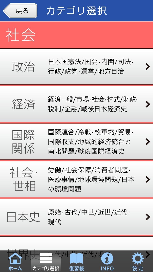 就職活動の一般常識は、企業によってどんな問題がでるかがバラバラで対策が大変。本アプリでは、社会・国語・英語・数学・理科・教養・マナーの重要問題を網羅しているので安心です。自分の気になる科目、単元から選んで学習できます。