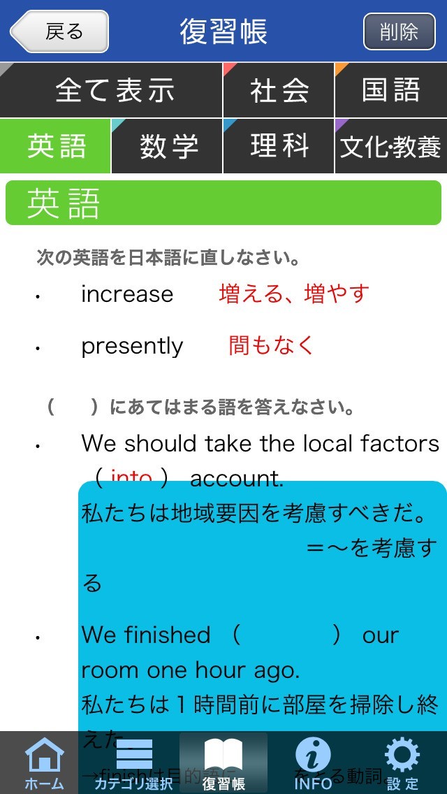 科目ごとの学習で解けなかった問題、もう一度解きたい問題を保存しておける「復習帳」機能を搭載。効率の良い学習が可能です。