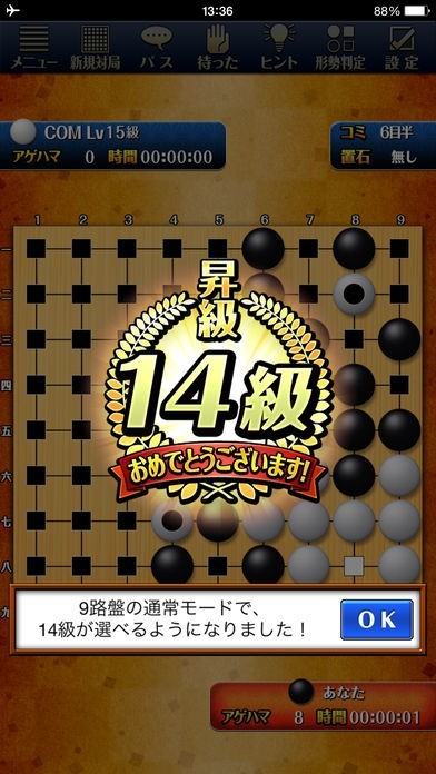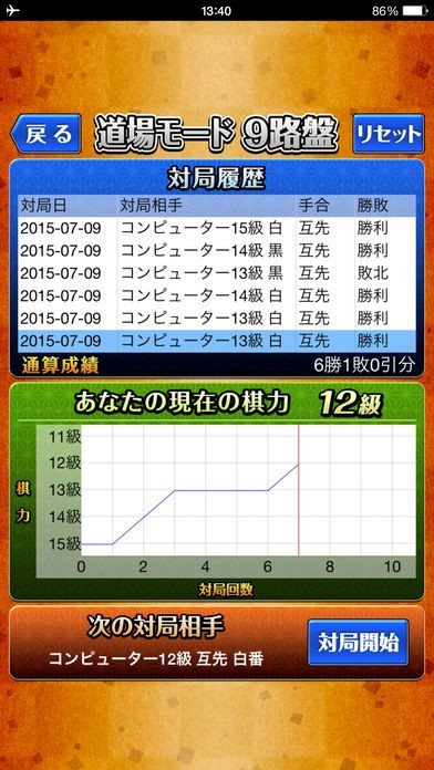 本アプリの最高棋力はアマチュア2級程度、これから初段を目指す中級者の方にも手応え十分の棋力を備えています。