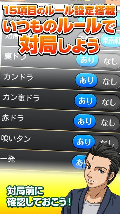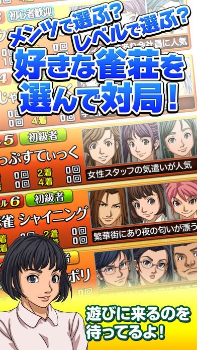 対戦するAIキャラはイカサマなし、牌操作なしのガチンコ勝負。純粋に麻雀の実力で勝負ができます。10種類の雀荘があり、自分のレベルに合わせて30人のAIキャラと切磋琢磨できます。