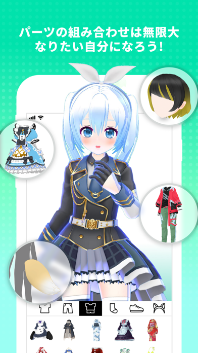 自由度の高いキャラクターメイクはこのアプリの魅力の1つです。体型・髪型・眉・衣装や肌の色、影などさまざまな項目をカスタマイズすることができるので、自分だけのキャラクターを作ることができます。