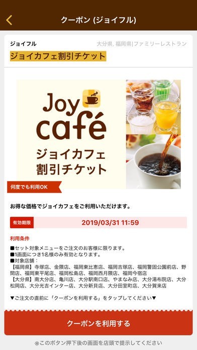App Storeより引用<ジョイフルの福岡・大分20店舗限定アプリです>