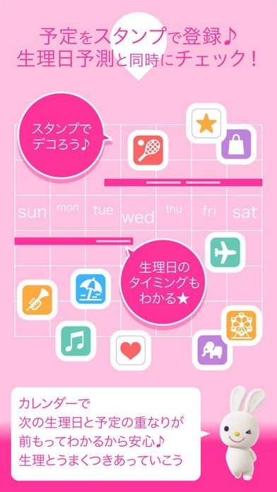 生理周期はもちろんプールの授業や試験の日程など、学生ならではの予定を管理することができます。スケジュールを一つのカレンダーに登録することで使い勝手も向上します。