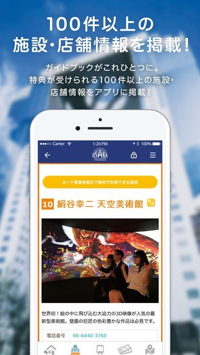 大阪周遊パスで利用可能な無料施設、特典施設及び、お得な店舗の情報を確認できます。