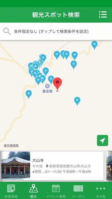 大山町の観光スポット、お店等、どこにどんな物があるのか一覧出来ます。