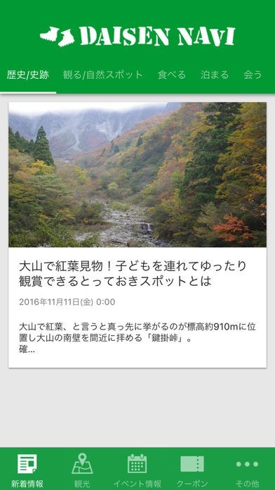 App Storeより引用DAISEN NAVIは大山の観光ガイドアプリです。