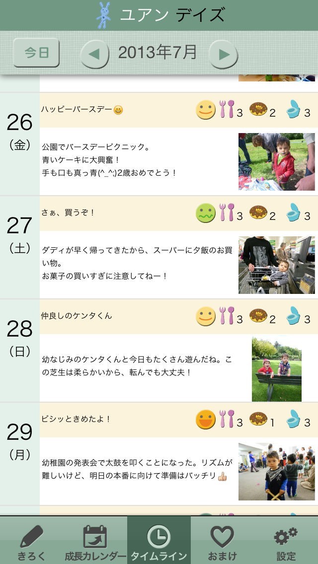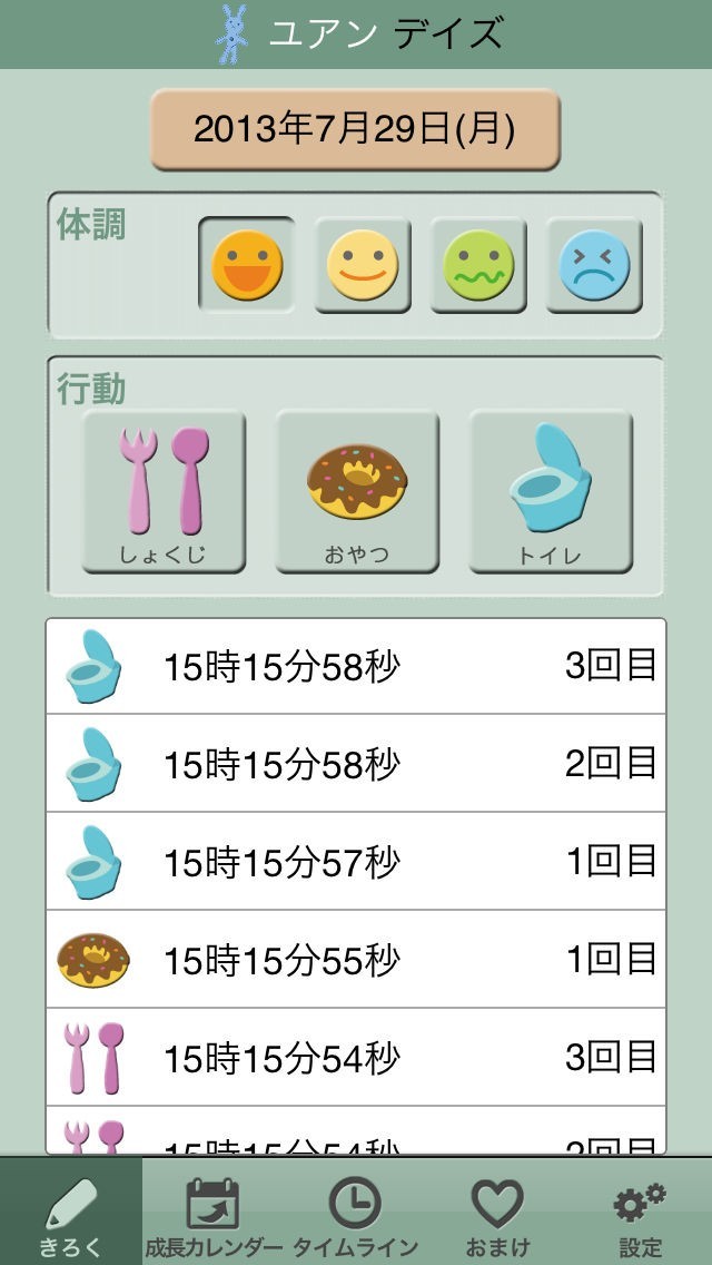 タイムラインで記録回数を確認。毎日の忘備録としても活躍すること間違いなし!