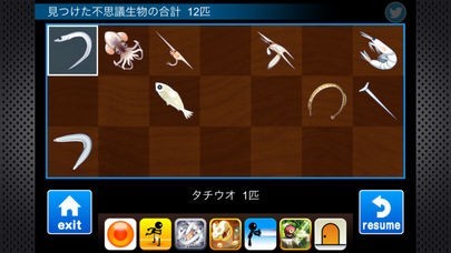 - Twitterボタンを押すと選択されている不思議生物の数をTweetすることができます。