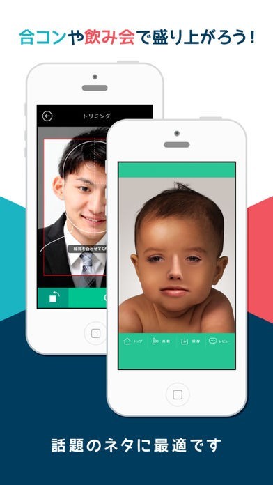 2枚の写真を選択するだけで、簡単に産まれてくる子供の顔予想が楽しめます。異性だけでなく同性の友達と試して遊んだり、芸能人と自分の写真を組み合わせたり、良い暇つぶしになっています。