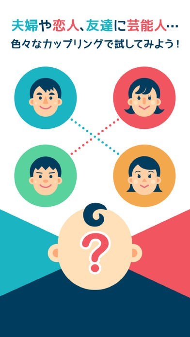 お父さん役の顔とお母さん役の顔と赤ちゃんの肌色を選ぶだけの3ステップで簡単に赤ちゃんの顔ができあがります。夫婦で真剣に・飲み会のネタに・大好きな芸能人との妄想になど使い方は人それぞれです。好みの楽しみ方を見つけてみましょう。